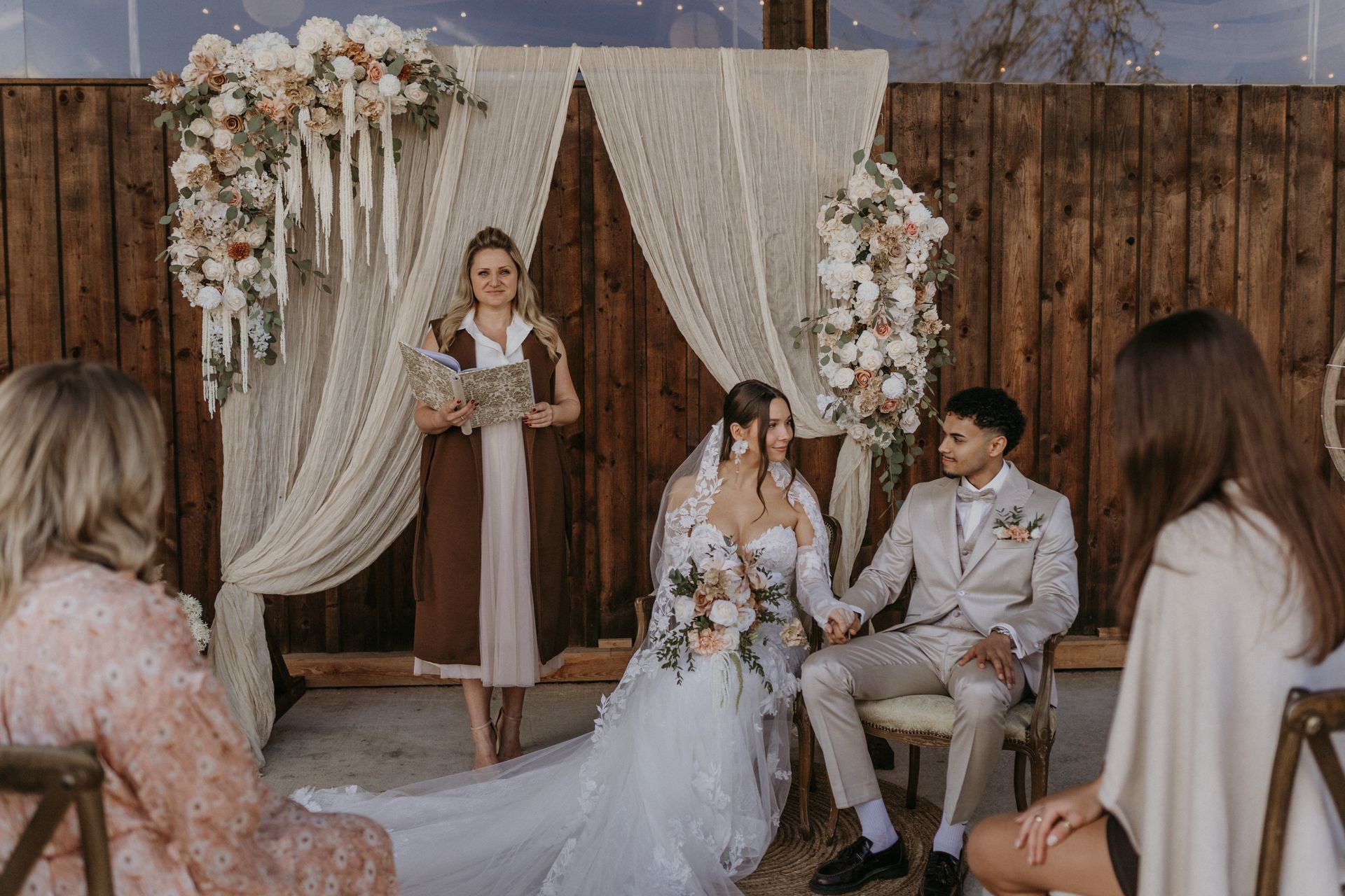 Mit der feierlichen Befragung und dem symbolträchtigen Ringtausch schließen wir die Trauzeremonie ab, die eure Liebe und Verbundenheit in jedem Moment widerspiegelt.