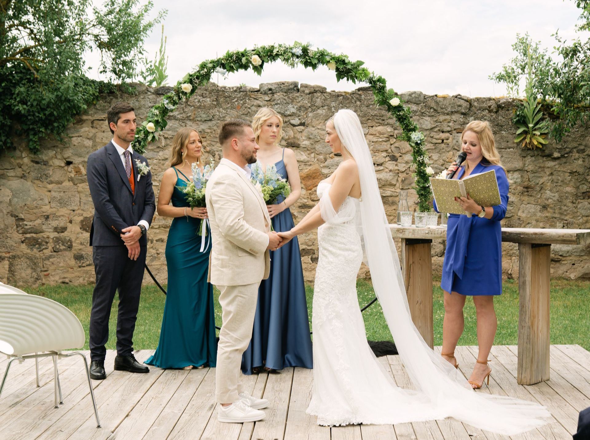 Als erfahrene Hochzeitsplanerin kann ich euch über die Zeremonie hinaus unterstützen. Ob bei organisatorischen Fragen, beim Verleih von Dekoration wie dem Traubogen oder bei der Empfehlung anderer Dienstleister für eure Hochzeit – ich stehe meinen Paaren beratend und praktisch zur Seite.